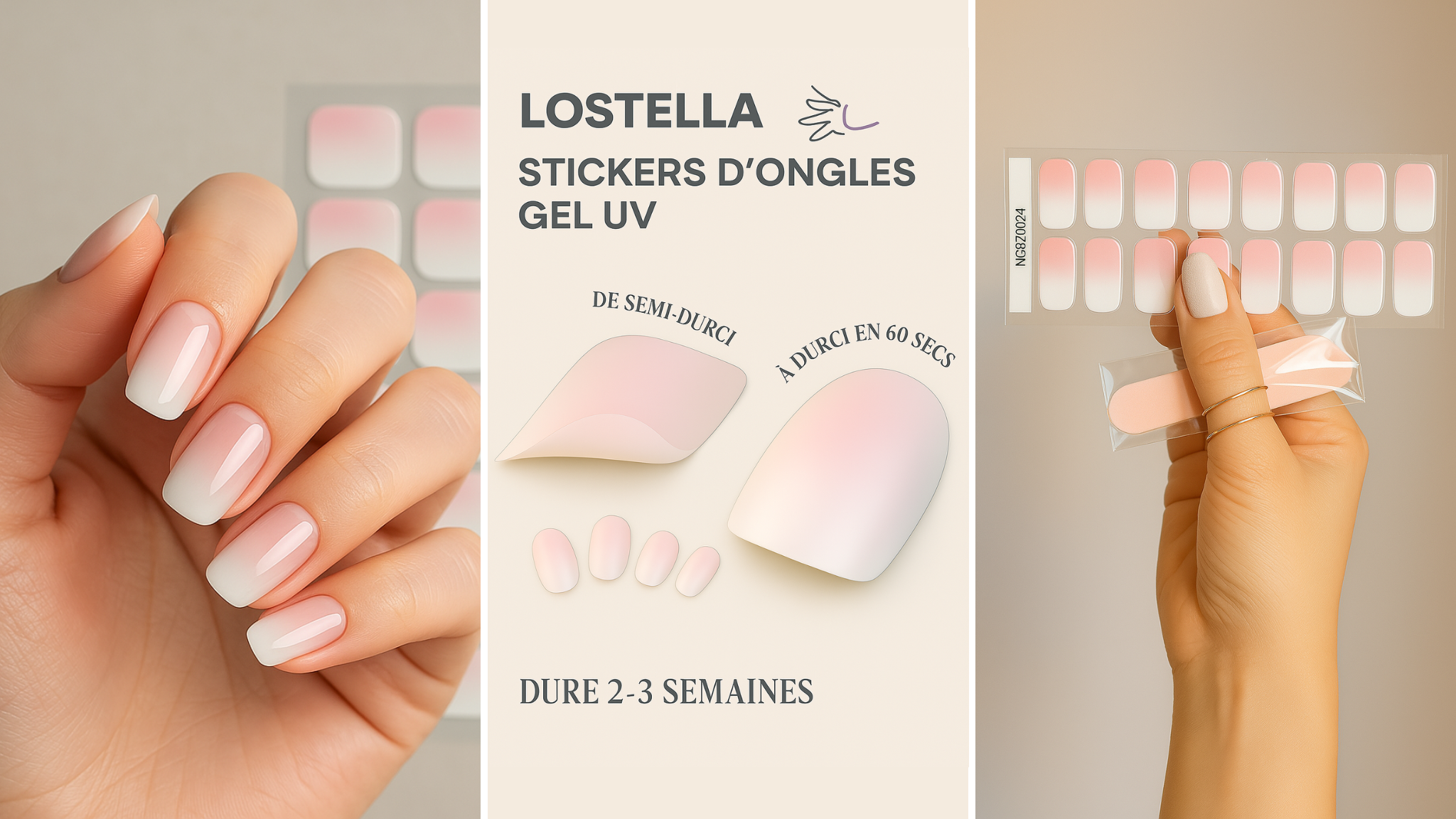 Lostella révolutionne la manucure à domicile ✨ Grâce à nos stickers UV, obtenez une finition parfaite, longue durée, sans vernis liquide ni salon !